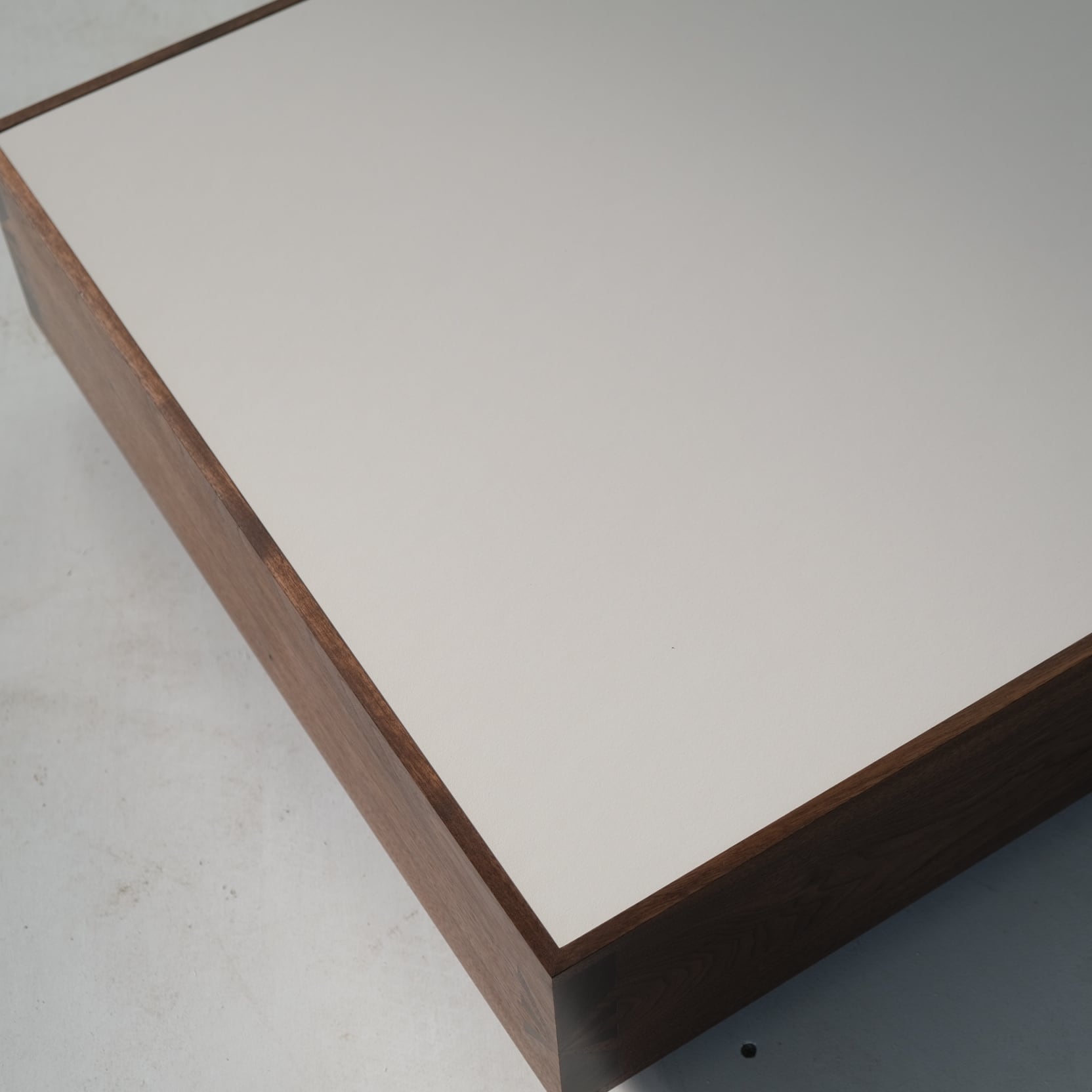 四方を伝統的組手の菊で組み上げたセンターテーブル。天板はリノリウムを使用し汚れにも強い素材となっております。